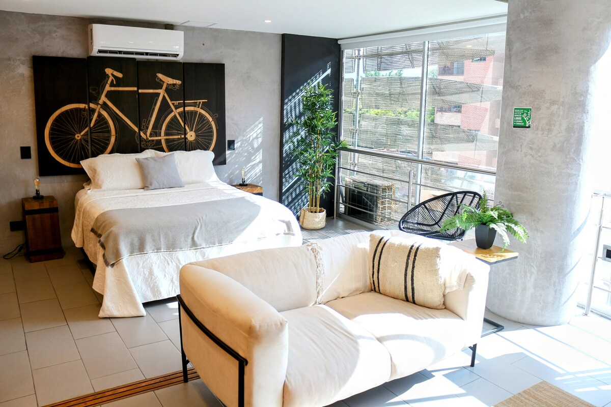 Située sur Laureles, parmi des maisons privées et des boutiques pittoresques, la façade de 5 étages d'Alori vous attire par son extérieur chaleureux en brique et en bois accentué par de la verdure et des balcons privés. La réservation comprend 1. Petit déjeuner continental léger de 8 h à 9 h. 2. Service de conciergerie 24h/24 et 7j/7 3. Guide touristique bilingue virtuel 24h/24 4. Transport aéroport vers Laureles (bâtiment) 5. Spa ( jacuzzi et bain de soleil) 6. Salle de sport 7. Assurance limitée 8. Parking privé 9. 1 pass au musée ou cours de danse