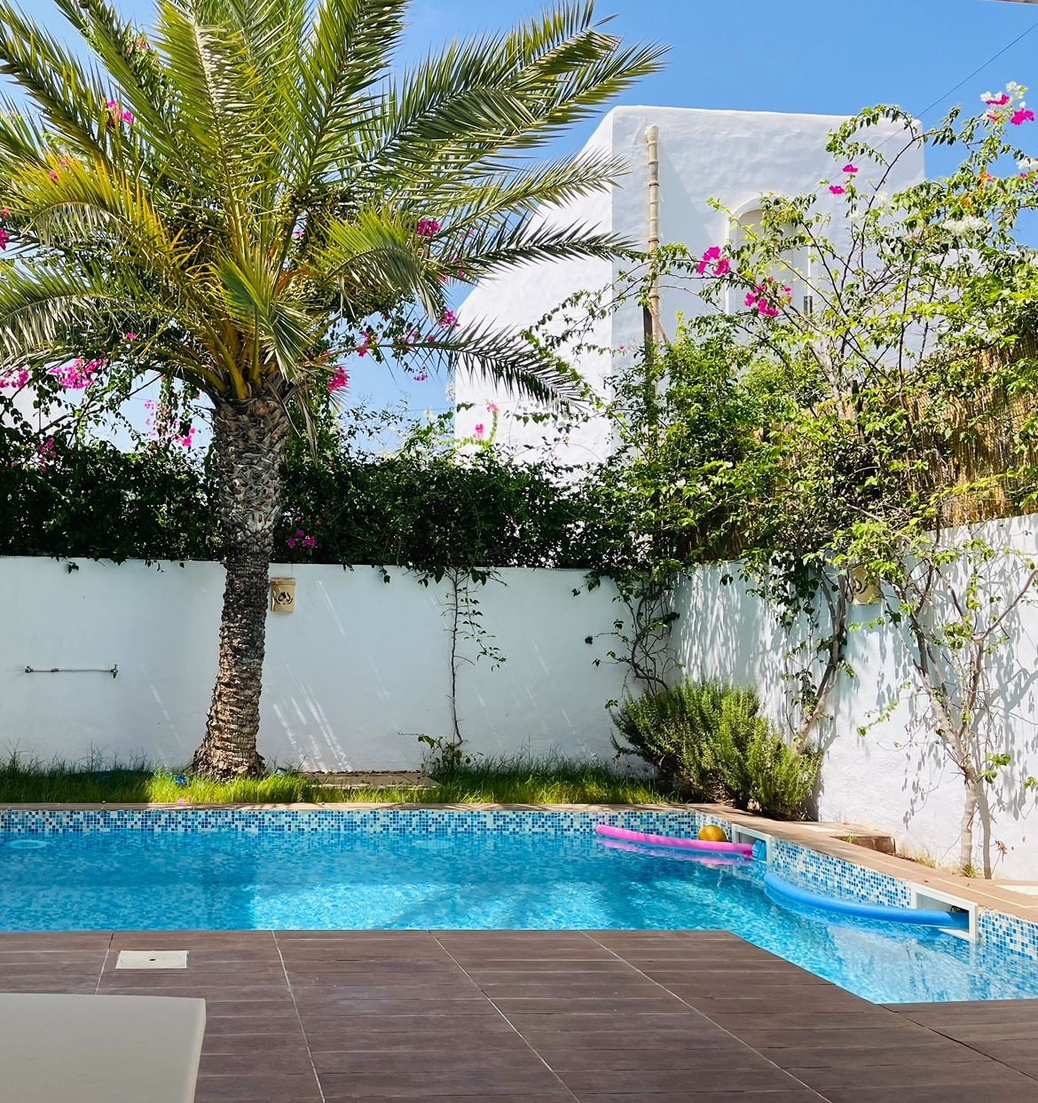 Vous adorerez le décor élégant de cet hébergement de charme aux couleurs de la superbe ville de djerba. Maison privée avec une magnifique piscine privative située dans la région d’Ajim dans un cadre naturel préservé à quelques mètres de la plage. Il vous offre un cadre unique de beauté, de calme et de sérénité. De plus, selon vos besoins nous pouvons mettre à votre disposition une femme de ménage et une cuisinière (originaire de la région) qui vous cuisinera les meilleurs plats.