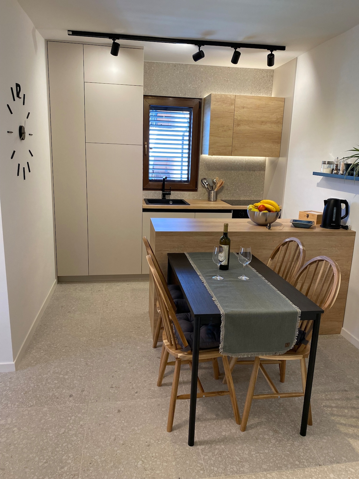 Appartement de luxe et moderne (65 m2) avec grande terrasse et 2 chambres, situé au premier étage. L'appartement est idéalement situé à Medulin, dans un quartier vraiment calme et intime, mais à seulement 5 minutes à pied de la plage et des restaurants. Jusqu'à 6 personnes, place de parking privée gratuite, belle terrasse, ce qui rend vos journées et vos soirées agréables. L'intérieur est confortable avec un mobilier élégant et luxueux qui vous fera vous sentir bien pendant votre séjour dans l'appartement.
