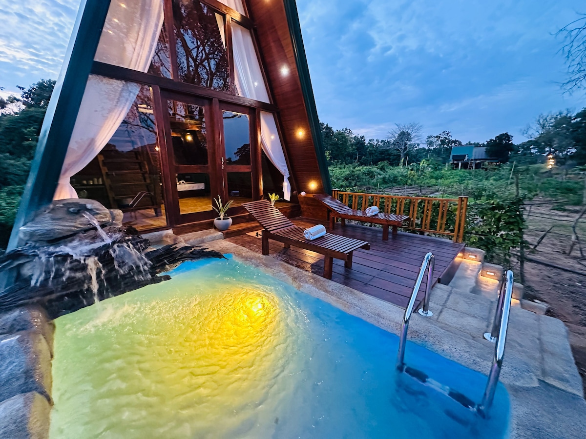 Experience the Usha Tree House, a peaceful retreat by a tranquil tank, offering breathtaking mountain views. Accessible by a scenic boat ride, your stay is both secure and serene. Enjoy private fishing, birdwatching, and occasional elephant sightings just 50 meters away. The treehouse comes with a private bathroom and toilet, plus we offer delicious meals and full tour packages. Stay connected with excellent mobile coverage for easy planning. Pack your essentials and let us take care of the rest