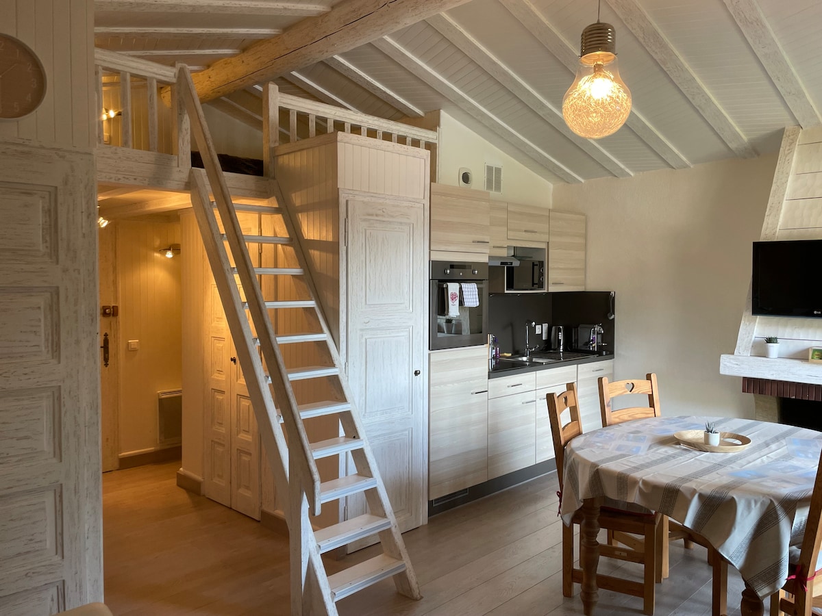 Studio entièrement rénové fin 2021/début 2022, ambiance cosy. Avec vue magnifique sur la chaîne des Aravis et sur les pistes de Skis du Crêt du Merle. Secteur village, au calme tout en étant à proximité des commerces. Vous pourrez admirer cette belle vue depuis le balcon exposé sud, ce studio de 20m2 peut accueillir 3 personnes. Studio très bien équipé et fonctionnel.
