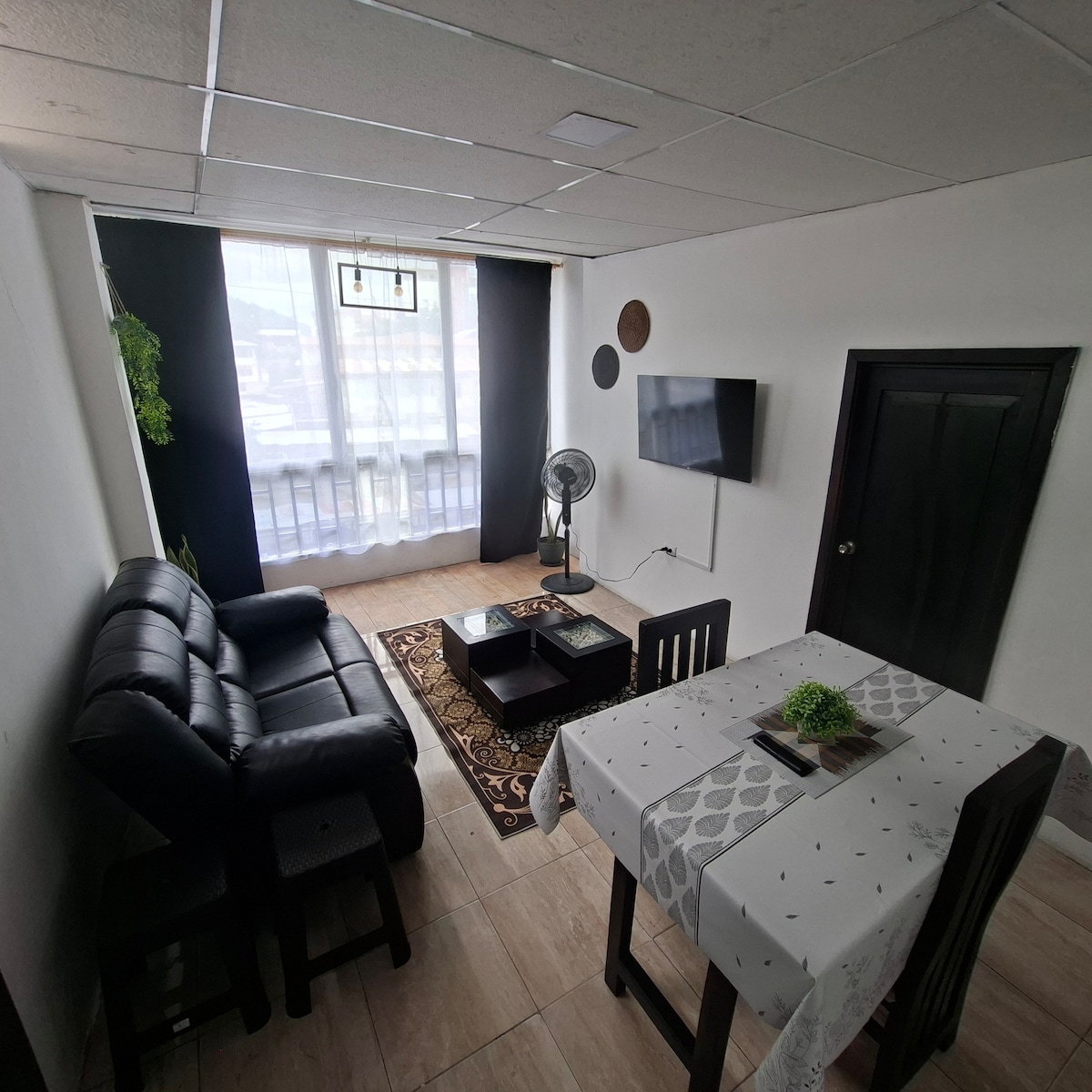 Hébergement dans un quartier résidentiel à quelques mètres du parc La Rotonda et du Tennis Club. Supermarchés à proximité. Contrôle d'accès numérique avec carte d'accès. 43 m2. Patio disponible. Deux climatiseurs. Grand canapé et petit canapé disponibles. Espace de travail avec Internet filaire et wi-fi, grand bureau, tableau noir et table de réunion. Service d'impression gratuit de 12 h à 15 h. Le coin cuisine n'a pas de cuisine avec cuisinière. Il dispose d'une cafetière, d'une bouilloire, d'une friteuse à air, d'un réfrigérateur.