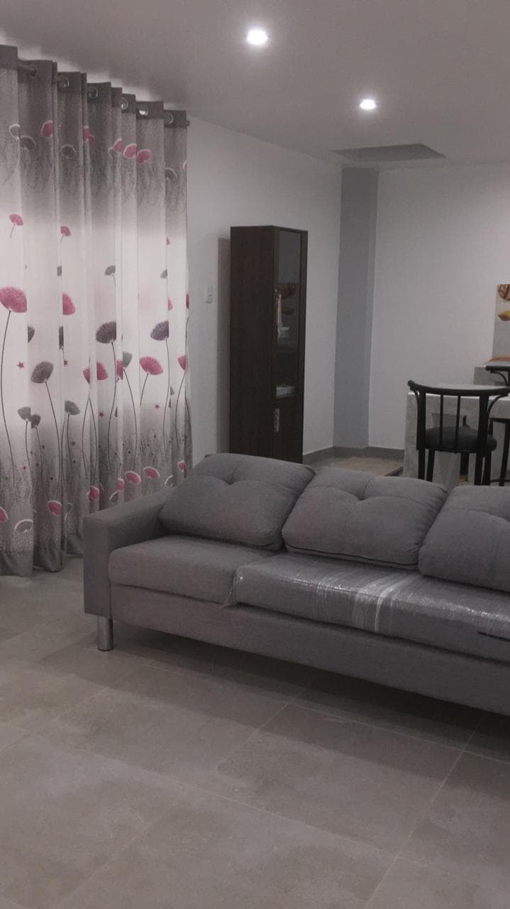 Appartement au 1er étage, entièrement meublé et sécurisé, avec disponibilité pour aider en cas de soucis. Situé à 3 pâtés de maisons du centre et à 6 de la plage. L'appartement dispose d'une chambre très spacieuse avec un lit 2 places et 1 lit carré et demi et 1 salle de bain complète avec spa. (Draps et serviettes de toilette fournis). La cuisine est équipée d'appareils électroménagers essentiels et de vaisselle. Il dispose également d'une salle et d'une salle à manger (un lit supplémentaire a été installé dans cet environnement)