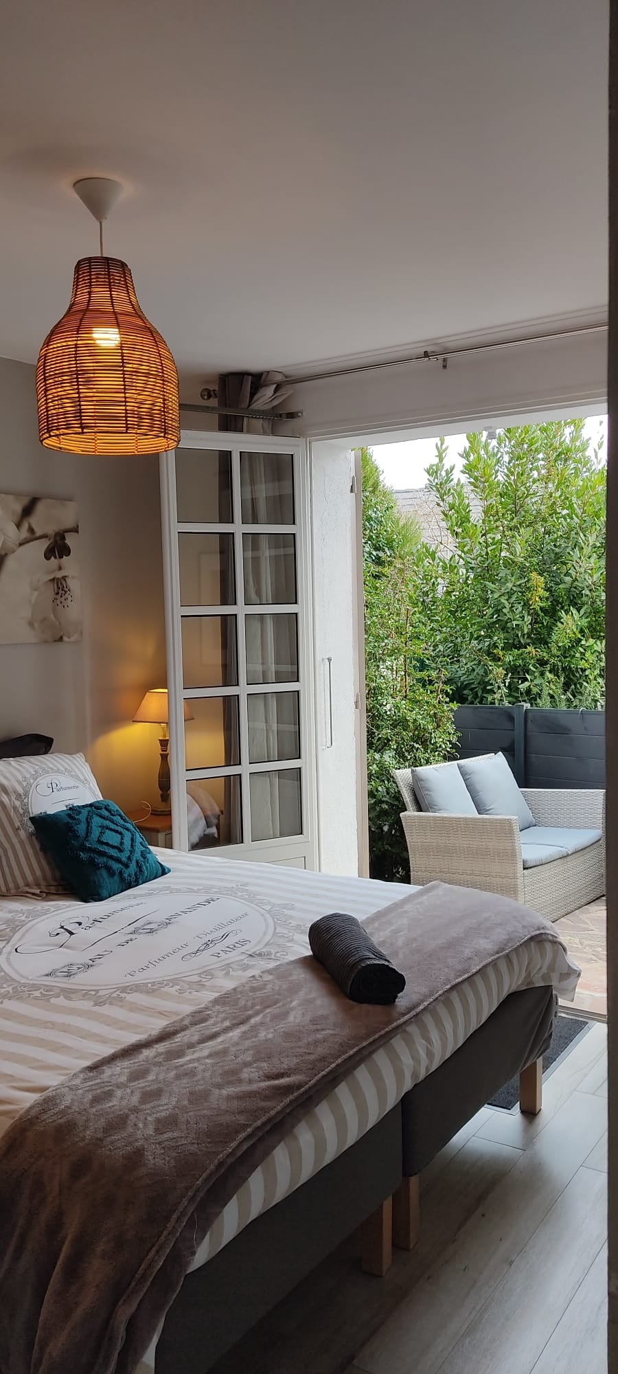 La villa Pretty climatisée, proche des bords de Seine, vous accueillera dans le plus grand confort. Vous profiterez de son séjour donnant sur son jardin, de ses 2 chambres , la première avec un lit en 160x200 cm, la seconde, au choix un lit en 160x200 cm ou 2 lits en 90x200 cm, de sa cuisine entièrement équipée et de sa très belle salle de bain. La villa dispose de la fibre optique, d'un emplacement de stationnement. La villa est une partie indépendante d'une grande maison. Non adaptée PMR.