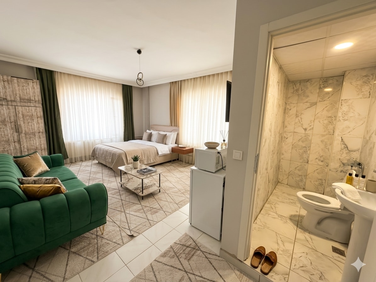 Situé en plein centre-ville, notre appartement offre un confort privilégié en matière de transport grâce aux lignes de tramway et de minibus qui passent. Notre appartement, qui est plus grand et plus spacieux que les appartements 1+0 typiques, a été conçu dans un concept moderne et luxueux avec tous les articles neufs et soigneusement sélectionnés. Avec ses normes d'hygiène élevées, son espace de vie confortable et son emplacement central, c'est un choix idéal pour ceux qui veulent séjourner en famille et pour les voyageurs à la recherche d'une expérience de qualité, sûre et prestigieuse lors de leurs voyages.