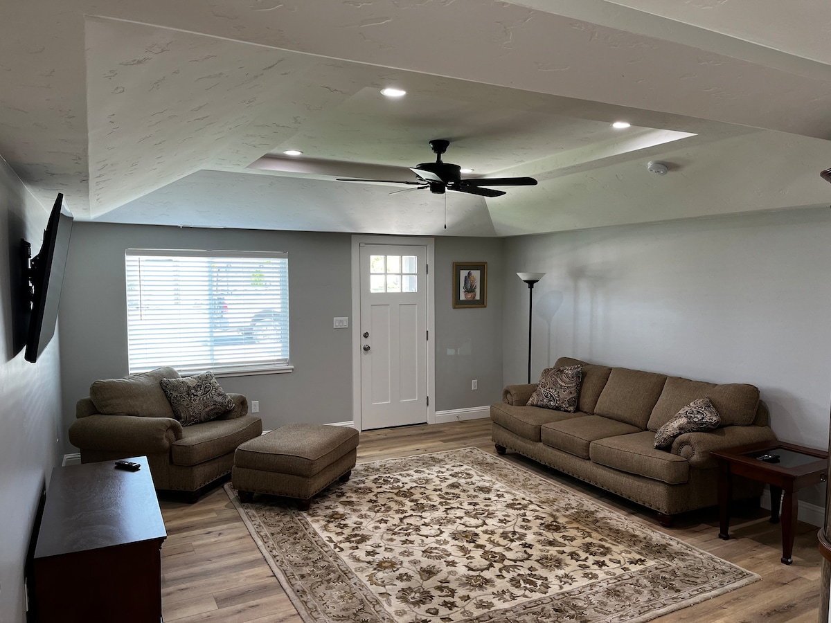Détendez-vous dans ce logement calme et élégant avant de vous rendre à Yosemite ou pendant que vous rendez visite à vos enfants qui fréquentent l'UC Merced. Cet endroit nouvellement construit et rénové. Notre suite dispose d'un beau mobilier, avec un lit West Elm et un matelas hybride Leesa super confortable, une télévision connectée de 55 pouces, une kitchenette et des ustensiles de cuisine, le WiFi fibre AT&T, des articles de toilette, un patio Patio privé, douche et baignoire. Café Le café est fourni. Trajet en voiture super rapide jusqu'au centre-ville de Merced, aux délicieux restaurants et à l'UC Merced.