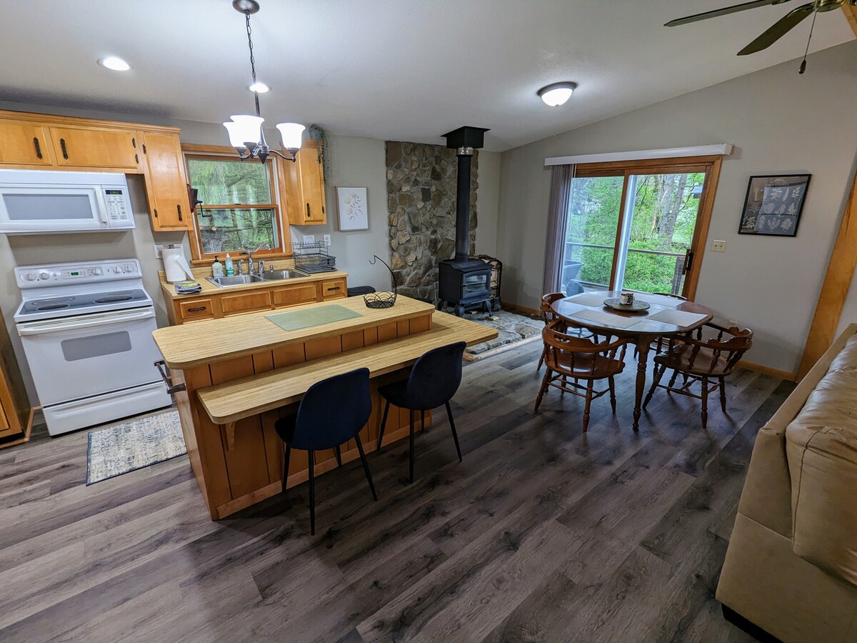 Évadez-vous au WiFi Cottage à New Wilmington ! Cette retraite paisible et boisée peut accueillir confortablement 6 à 10 personnes. Profitez d'un confort moderne, notamment d'une cheminée confortable, d'un jacuzzi extérieur et d'un appareil Alexa dans la cuisine pour vous guider dans votre accueil 5 étoiles. Parfait pour les familles à la recherche d'une escapade sereine près du Westminster College et de la communauté Amish. Un mélange de charme champêtre et de connectivité.