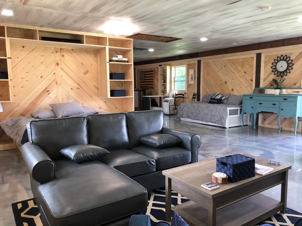 Ressourcez-vous dans ce logement inoubliable niché en pleine nature. Autrefois une grange pour le harnachement et le foin, maintenant un studio paisible avec toutes les commodités modernes, y compris une salle de bain complète, une cuisine et une buanderie. Jouez avec des chèvres ou détendez-vous sur la balançoire pour regarder les vaches et les chevaux paître. Nos animaux sont également des animaux de compagnie et nous accueillons les vôtres ! Choisissez votre aventure ! Le Saddlewood Ranch est entouré de sentiers, entre 2 lacs (5 minutes), mais à proximité de la ville et de Camp Grayling. Que vous recherchiez la sérénité ou l'aventure, votre escapade vous attend !
