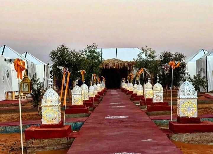 Bienvenue dans notre retraite exquise dans le désert au cœur de Merzouga, où vous découvrirez la magie du Sahara dans un confort et un style ultimes. Que vous recherchiez une escapade romantique, une aventure entre amis ou une escapade paisible, notre camp de luxe dans le désert vous promet une expérience inoubliable.