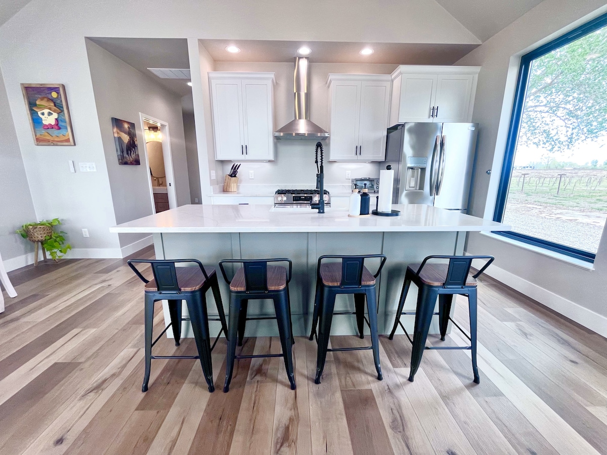 Cette maison « verte » nouvellement construite est un mélange de styles modernes et champêtres et vous inspirera sûrement à profiter de toutes les activités de plein air que la Grand Valley a à offrir. La maison Perfect Day Getaway est située dans une ferme pittoresque à moins de 8 minutes de randonnée de classe mondiale, de vélo de montagne et de route et de rafting en rivière. C'est également un excellent point de départ pour des excursions d'une journée à Moab et au Grand Mesa ! Elle a été construite pour maximiser l'exposition au sud et la vue sur le Colorado National Monument.