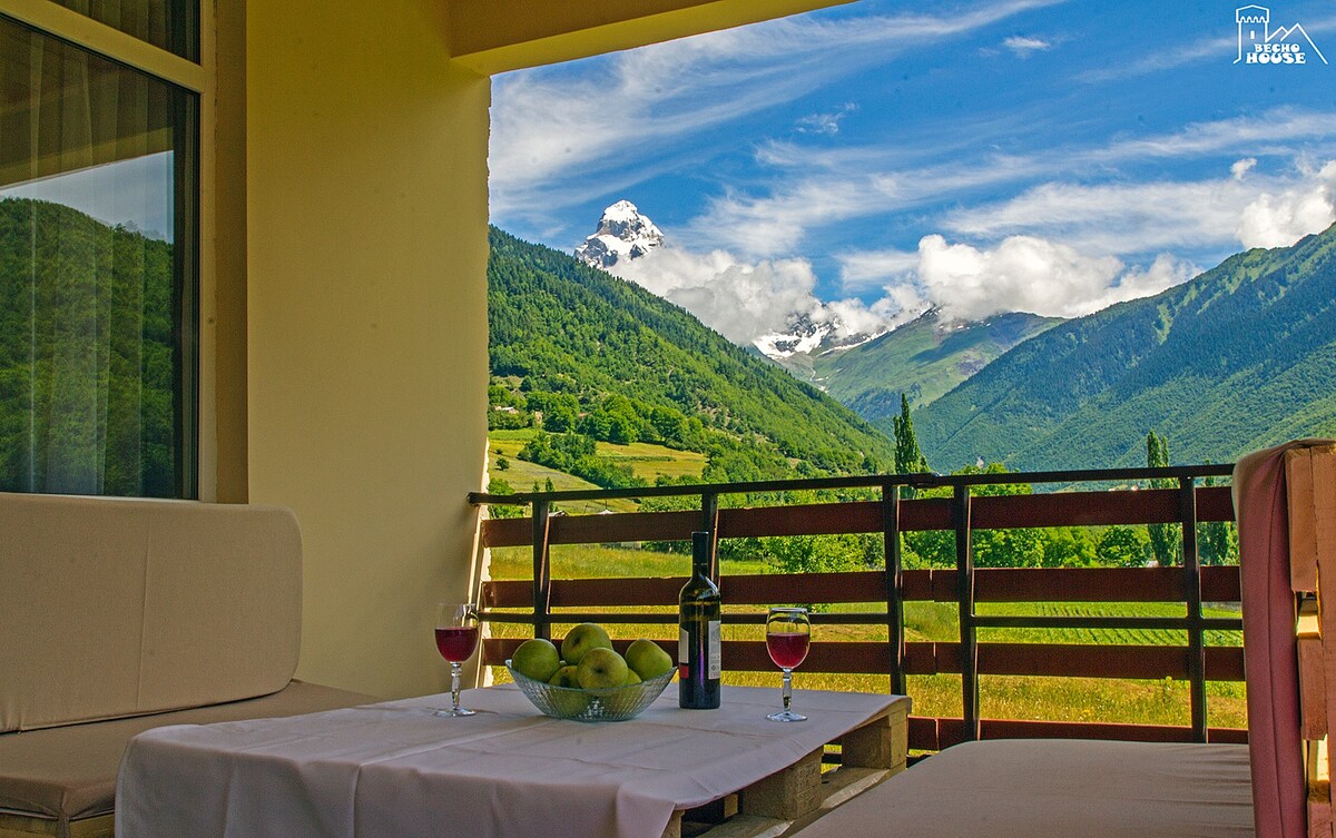 Bienvenue au 5 Mountains Hotel à Mestia, Svaneti ! Niché au milieu de montagnes majestueuses et de tours anciennes de Svan, nous proposons des chambres confortables avec vue imprenable, un petit déjeuner local fait maison et une hospitalité familiale chaleureuse. Profitez d'expériences inoubliables comme une randonnée à Ushguli, des excursions en Jeep ou des cours de cuisine svan. Détendez-vous sur notre terrasse panoramique ou près de la cheminée. Ici, tradition et confort se rencontrent pour un séjour inoubliable !