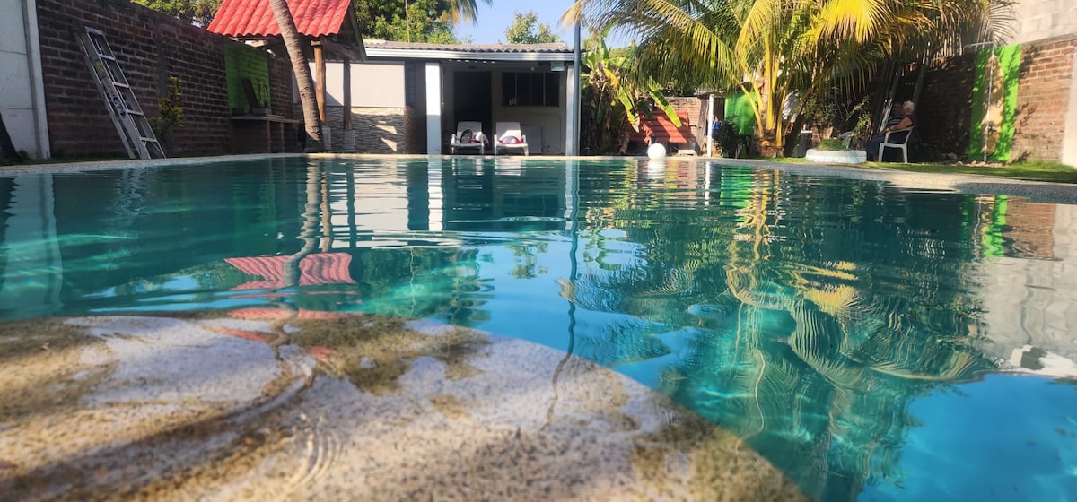 Notre maison, située sur la plage El Zapote en face de l'embouchure de Barra de Santiago, vous propose 6 chambres spacieuses, 4 avec leur propre salle de bains et 2 qui partagent. Toutes avec A/C et de nouveaux lits. Zones communes spacieuses et bien ventilées, piscine et ranch avec espace social. Vous serez surpris par la végétation et la spectaculaire plage de sable fin avec un accès direct à l'Estero, où vous pourrez nager, vous promener, louer un bateau pour connaître les mangroves ou simplement profiter de la belle vue sur la mer
