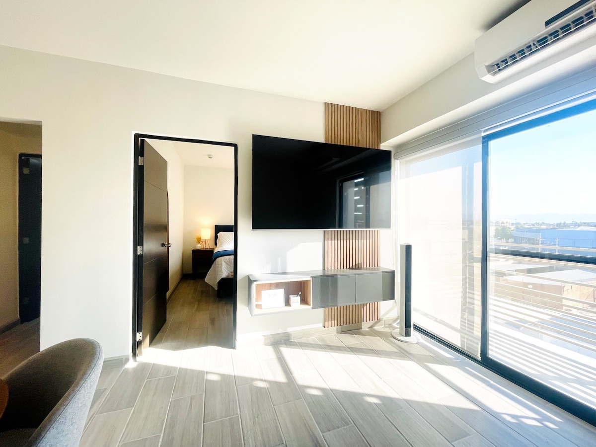 - Appartement moderne de 2 chambres au 5e étage, à quelques minutes de la Plaza Cachanilla - Accès par ascenseur pour plus de commodité - Arrivée autonome avec serrure à digicode intelligente. - Stationnement pour 2 véhicules. - Climatisation dans tout l'appartement - Cuisine entièrement équipée, coin repas et buanderie - Télévision connectée 4K de 75 pouces avec Netflix, Disney+, Amazon Prime et HBO - Terrasse commune au 9e étage avec centre d'affaires, barbecues et coin salon - Accès au club social : piscine, salle de sport et salle de jeux - Nous émettons des factures MX (Facturamos)