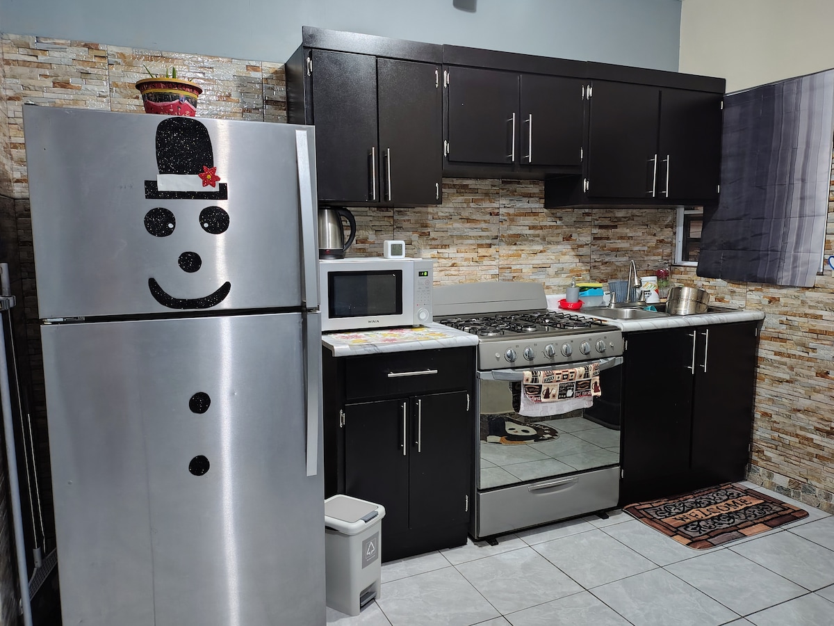 Profitez d'une expérience élégante dans un bel appartement entièrement meublé, au rez-de-chaussée, excellent emplacement avec 2 chambres avec lit Queen et linge de maison, salle de bain complète, salon avec télévision intelligente, Internet, cuisine équipée et avec des ustensiles, lave-linge et sèche-linge, chaque espace dispose de la climatisation mini-split, parking avec garage électrique pour 2 voitures.