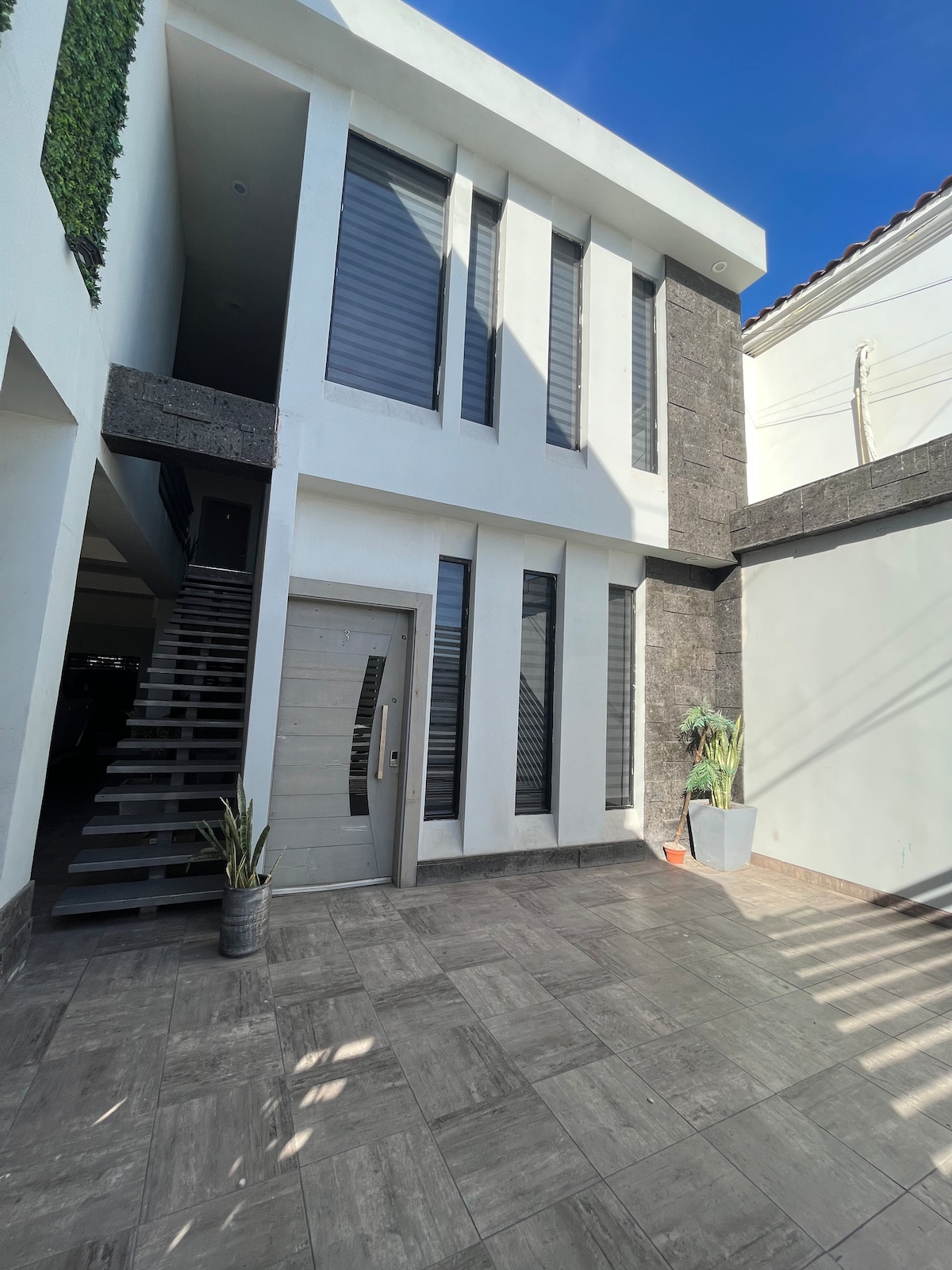 - Modern 2-bedroom apartment on the 5th floor, minutes from Plaza Cachanilla - Elevator access for easy convenience - Self check-in with smart keypad - Parking for 2 vehicles - AC throughout the apartment - Fully equipped kitchen, dining area, and laundry space - 75” 4K Smart TV with Netflix, Disney+, Amazon Prime, and HBO - Communal terrace on the 9th floor with business center, grills, and lounge area - Social Club access: swimming pool, gym, and game room - We issue MX invoices (Facturamos)