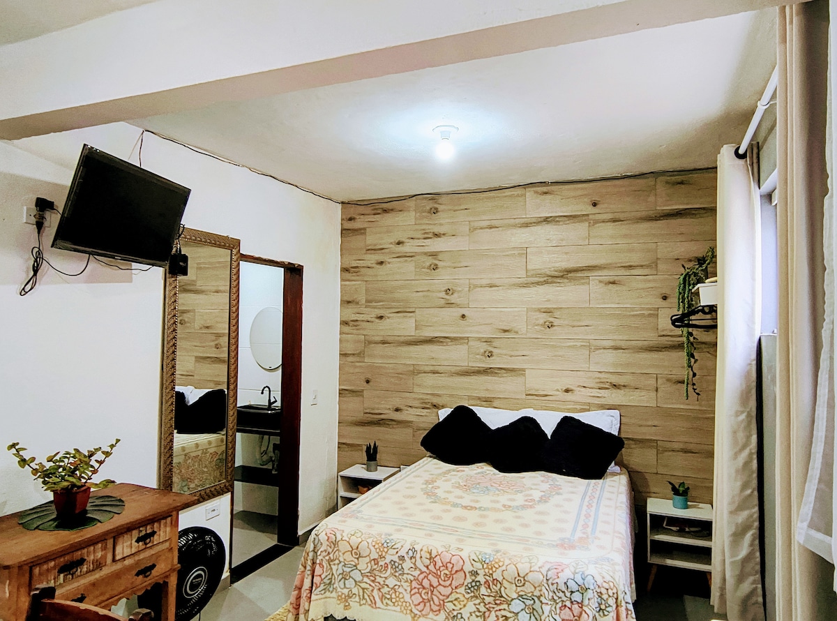 Mon espace est situé à 800 mètres de la plage, des activités pour les familles et la vie nocturne. Vous apprécierez mon logement pour le lit confortable, la cuisine, le confort, la hauteur des plafonds et la vue. Mon espace est parfait pour les couples et les familles (avec enfants). Il dispose de 2 chambres, une suite et la deuxième chambre avec 1 lit double et 1 lit superposé. Il dispose de 2 matelas pour les invités supplémentaires. Climatisation dans les deux chambres. Il dispose d'un jacuzzi privé et d'un barbecue. La copropriété dispose de 10 maisons face à la nature.