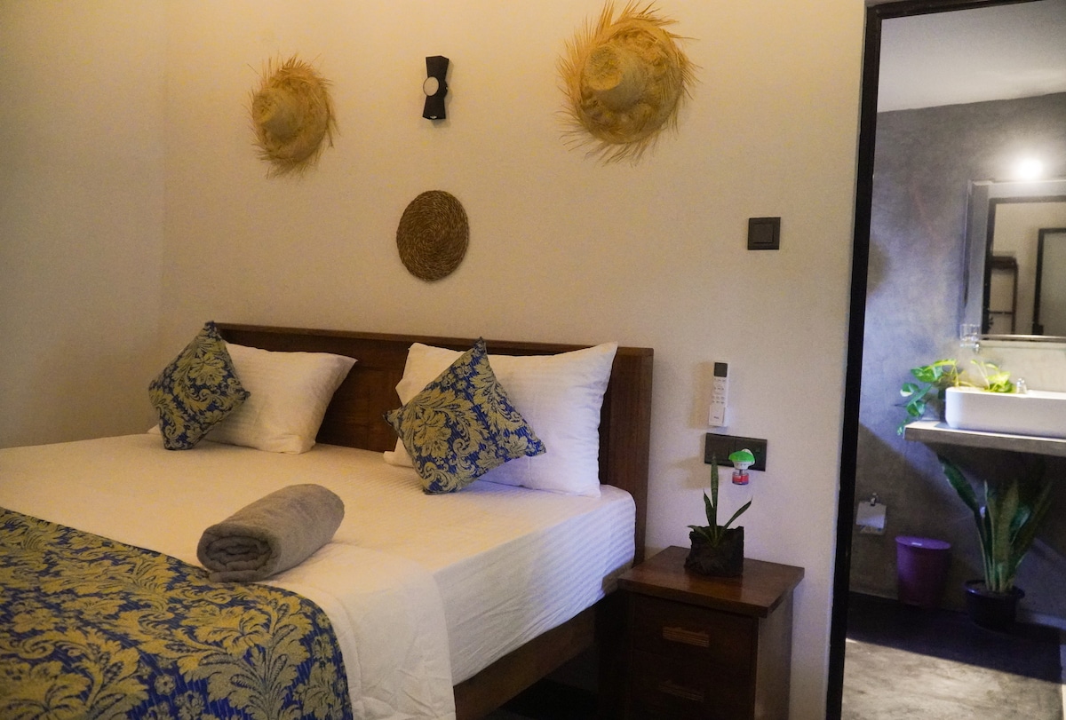 Logement privé indépendant de 1 chambre, salle de bain attenante dans le jardin de notre maison,accès à la piscine, au hamac et à un espace extérieur privé. Ça doit être des amoureux des chiens,nous avons 2 chiens. Nous sommes LGBTQIA+ friendly. La propriété se trouve dans un village calme,entouré de rizières et de paons. L'observation de la faune est excellente. Très calme le soir, voyez comment vivent les vrais Sri-Lankais. Détendez-vous dans cet espace calme etélégant.