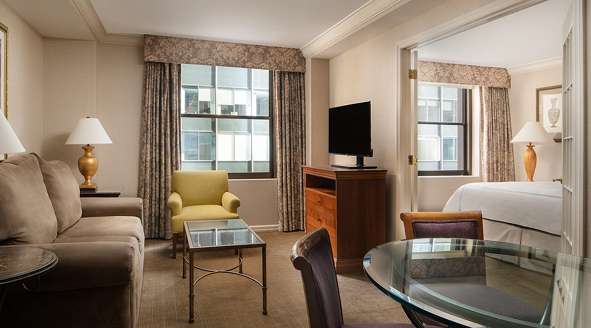 Grande suite d'une chambre avec vue luxueuse sur Park Ave.