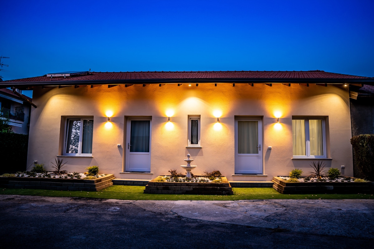 Elegante Appartamento spazioso al piano terra all'interno di un esclusivo contesto di sole ville. Arredato in maniera funzionale per qualsiasi tipologia di viaggiatore. Situato in posizione strategica, immerso nel verde ma a due passi dal Lago Maggiore, dona tranquillità e privacy senza rinunciare a numerosi servizi raggiungibili in auto come, come supermercati, lavanderie, ristoranti e bar. Ideale per chi ha bisogno di spazio, privacy e confort godendo della natura nelle immediate vicinanze