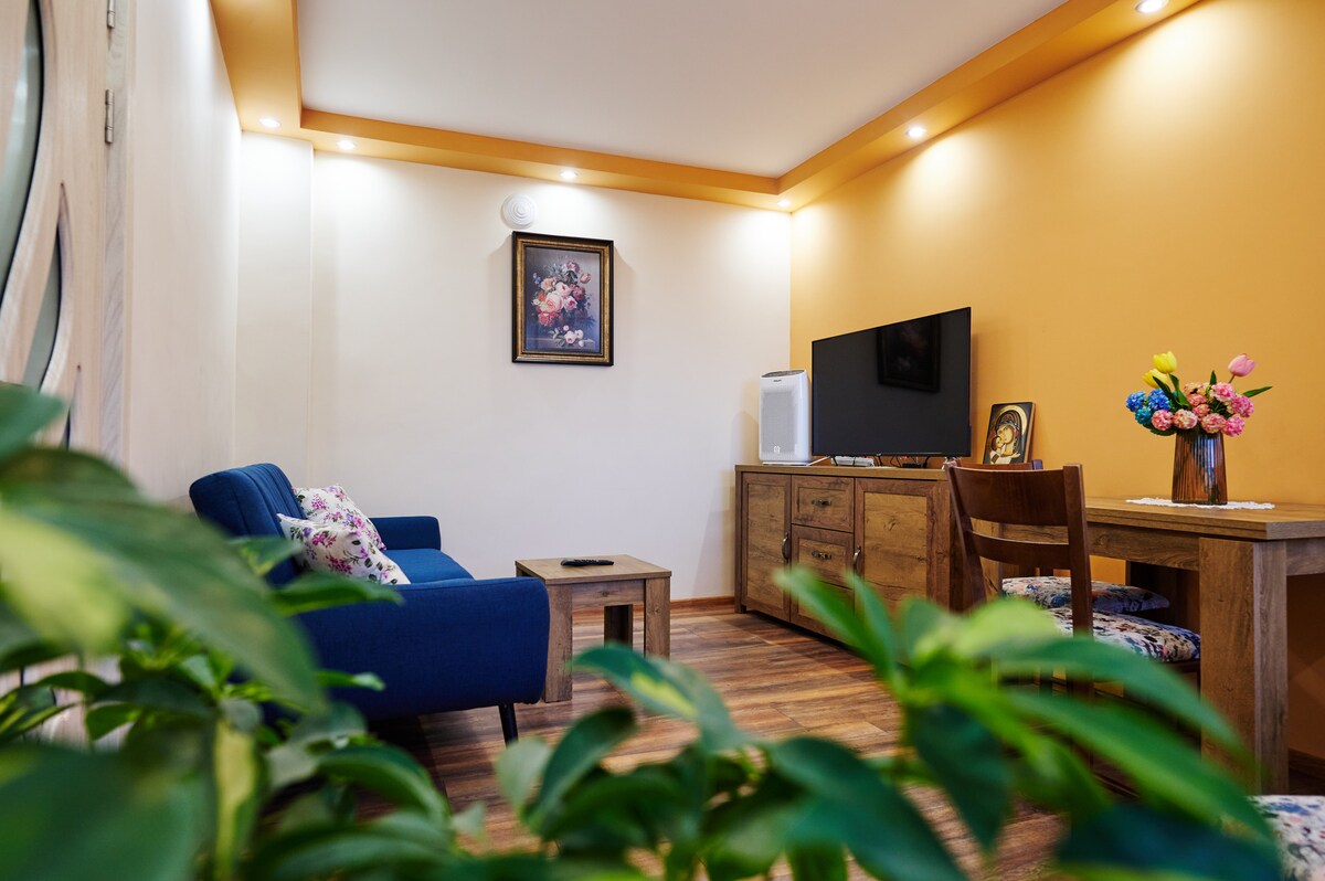 Bienvenue dans notre appartement lumineux, propre et confortable – votre maison loin de chez vous ! Il peut accueillir jusqu'à 3 personnes et dispose d'un lit double confortable et d'un lit simple dans une chambre commune et confortable. Il y a un canapé avec une télévision, une kitchenette entièrement équipée (micro-ondes, réfrigérateur, bouilloire, machine à café, thé, café et épices de base), ainsi qu'une salle de bain avec tout ce dont vous avez besoin. Il est situé au cœur de Vratsa, mais dans une rue calme. Idéal pour les promenades, le repos ou un court séjour. Nous vous attendons avec le sourire !