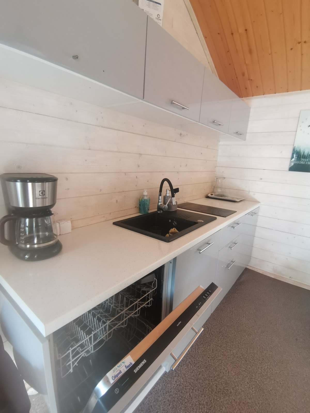 Entièrement équipé, fonctionnel et très confortable même pour un grand nombre de voyageurs. Design moderne, finition de haute qualité, souci du détail. Une sensation de loft avec des touches fortes tout au long de la nature. Bois, verdure, papier peint apaisant, belles et inspirantes photos d'oiseaux. Les chalets peuvent accueillir de 2 à 8 personnes. Un salon confortable avec un canapé triple, une grande table basse, une télévision et une cheminée atmosphérique est un endroit idéal pour se détendre après une journée.