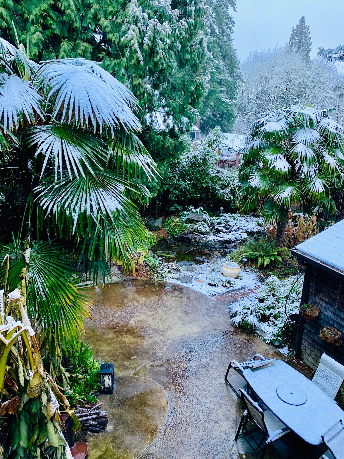 Cet appartement unique au-dessus d'un garage/magasin, détaché de la maison principale. Niché dans une forêt urbaine. Je l'appelle Notre nid de rouge-gorge parce que vous regardez sur les branches de grands sapins. Il est très privé, mais Starbucks est juste à côté. Entrée privée et stationnement hors de la rue. Cet espace dispose de tout ce dont vous avez besoin : cuisine complète, laveuse et sécheuse, lit queen size et canapé-lit, ainsi qu'un Play and Pack pour les tout-petits. Quartier piétonnier, marché de parcs et restaurants accessibles à pied.