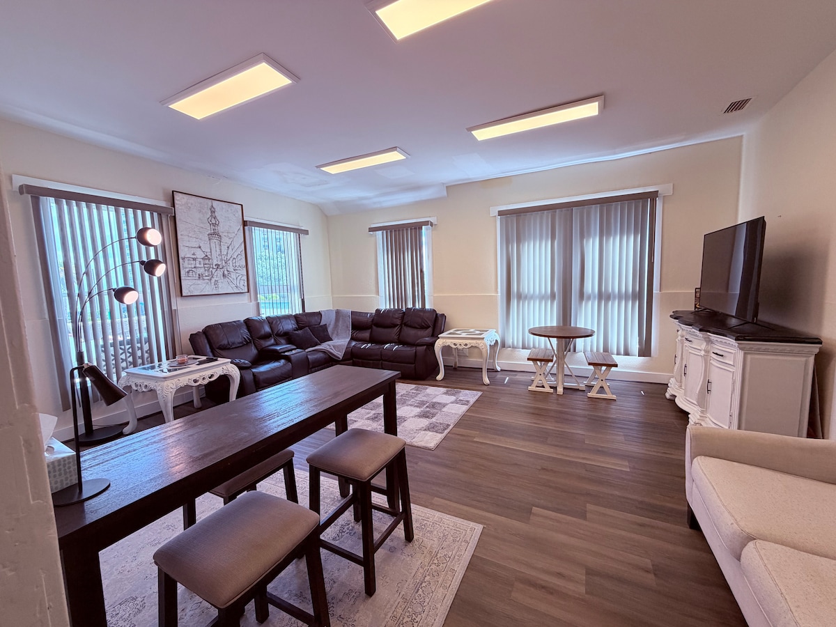 Bienvenue à Bonsai Home, un mélange unique de confort moderne et d'étreinte de la nature. Notre charmante demeure, nichée entre Orlando et Winter Park, offre une fusion harmonieuse d'un design intérieur élégant et d'une ambiance apaisante. Pendant que vous vous installez dans votre espace de vie confortable, profitez de nos équipements bien pensés et de nos détails captivants inspirés par la tranquillité du bonsaï. Soyez assuré que nous sommes à votre service chaque fois que vous avez besoin d'aide ou que vous avez des questions. Nous vous souhaitons la bienvenue à Bonsai Home !