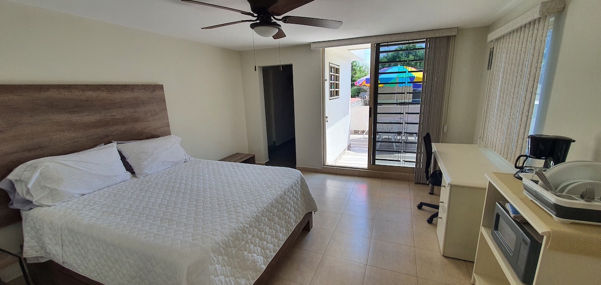 Suite Exécutive au Poniente de Monterrey dans Bâtiment Privé et Sûr, avec accès contrôlé par Serrures intelligentes. Il dispose d'une chambre lit Queen Size, avec lit, buros, tiroir, et miroir, climatisation froide/chaleur, éventail de plafonds, salle de bain privée avec arrosoir, sanitaire et lavabo, balcon, télévision 43 pouces et Wi-Fi . À 2 Minutes du Paseo de los Leones. La cuisine et la blanchisserie sont partagées avec les suites de l'appartement. Il peut être loué pour les courts séjours et à long terme.
