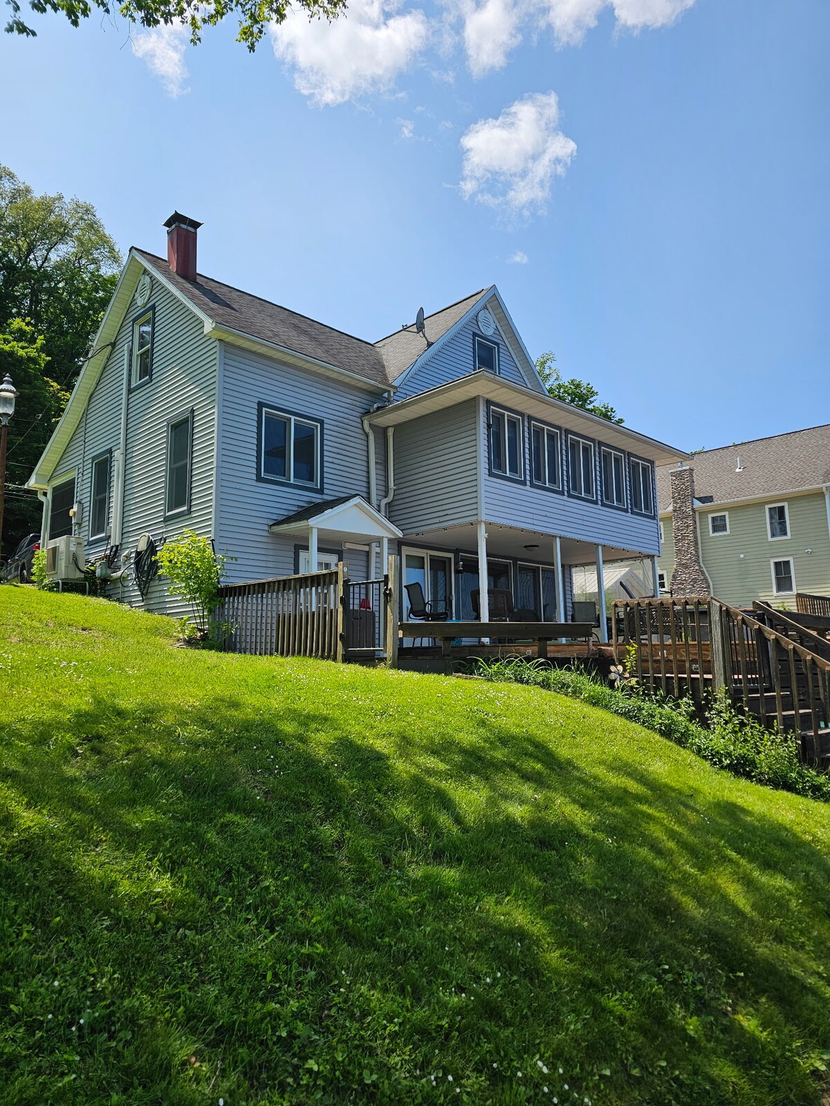 Our home is located in historic North East Pa. The house sits on a bluff overlooking beautiful Lake Erie with steps to access the beach. We have 2 bikes, a fire pit and plenty of seating on the oversized deck to enjoy your view of bald eagles flying along the shore. A split air system gives Air conditioning in the entire home makes your stay very comfortable. We are certain you will love your escape to the lake.