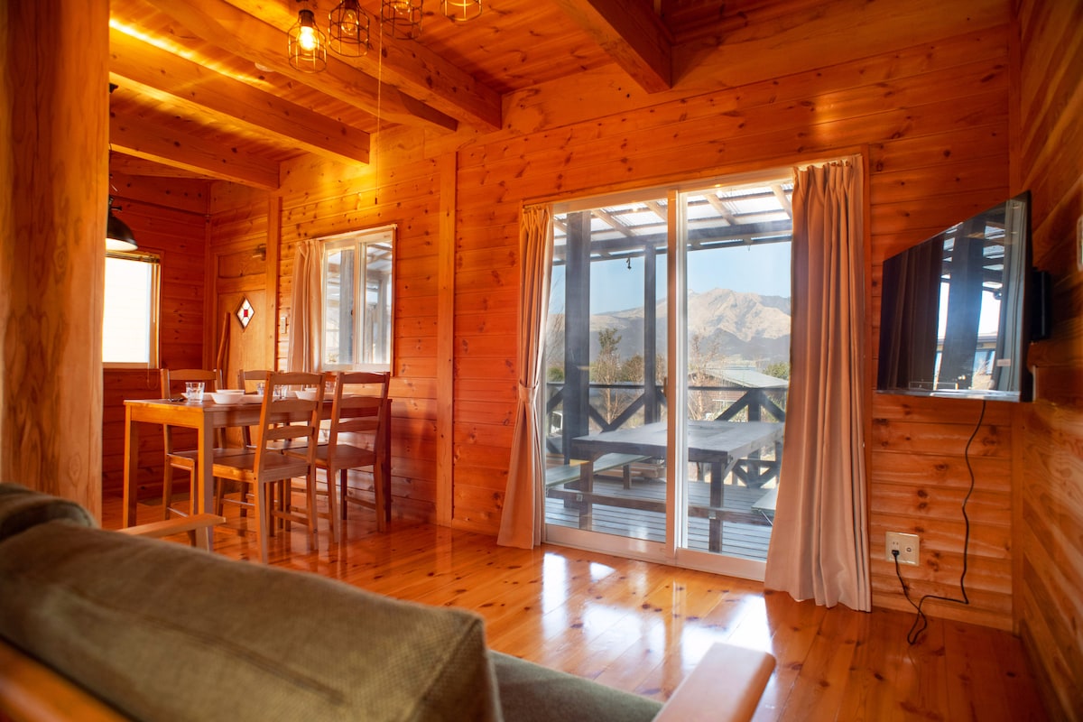 Il est à 2 minutes en voiture de la gare routière Aso Mango no Kugino.Il se trouve également à quelques pas seulement. La fenêtre offre une vue panoramique sur les cinq sommets du mont Aso. C'est une maison en rondins compacte. La cuisine, la salle de bain, le lavabo et le dressing sont neufs. Le matin, ce serait fantastique de pouvoir prendre une tasse de café sur la terrasse en bois tout en admirant le mont Aso. Hisakino Onsen Shiki-no-Mori (source d'eau chaude) est à 3 minutes en voiture. Veuillez l'utiliser comme base pour visiter Aso (^ ^) Parking gratuit pour 1 voiture sur place.N'hésitez pas à nous contacter si vous souhaitez garer plus de 2 voitures. Il y a deux logements dans la propriété.Une maison vous sera louée. Le shampoing, le savon pour le corps et une serviette de bain par personne sont fournis. Nous ne fournissons pas de dentifrice, de brosses à dents, etc. Afin d'être juste au sujet des frais d'annulation, nous facturerons les frais d'annulation conformément aux conditions, quelle qu'en soit la raison. Nous vous facturerons des frais de ménage supplémentaires s'il y a des taches, de la vaisselle sale laissée derrière vous ou s'il y a une odeur de cigarette dans la chambre. Vous ne pouvez pas regarder les chaînes de télévision hertziennes, mais vous pouvez regarder Netflix, YouTube, TVer, etc.(Veuillez utiliser votre compte personnel) Nous prenons des mesures pour prévenir la présence d'insectes, mais comme la région est riche en nature, des insectes peuvent être présents.Merci de ne pas réserver si vous ne souhaitez absolument pas voir d'insectes.