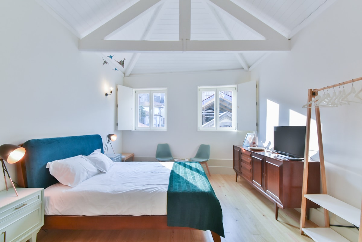 • Bel appartement confortable dans le centre de Porto. • 26 mètres carrés • Vue imprenable sur le fleuve Douro et le pont D. Luís I. • Bâtiment rénové en 2019 ; • La décoration est lumineuse et claire. • Chambre ouverte avec TV + cuisine entièrement équipée + salle de bains bleu vif. « Probablement le meilleur Airbnb pour deux voyageurs dans lequel j'ai séjourné. Vues incroyables. Propre et rénové dans un style très moderne et donc minimaliste. Haut de gamme. »