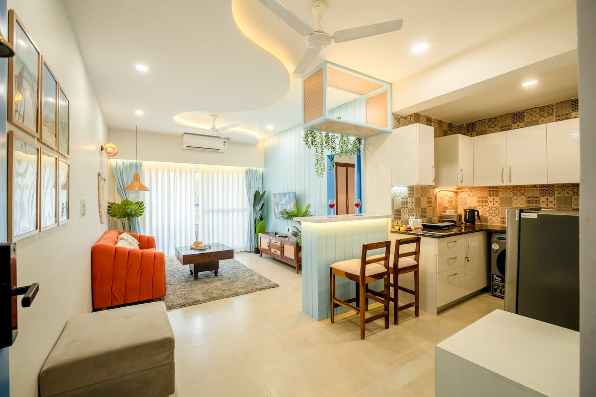Elegant Coastal Apartment •Walk to Candolim Beach