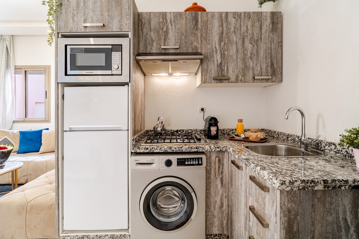 Découvrez le luxe moderne de cet élégant appartement entièrement équipé, niché au cœur du quartier Gueliz de Marrakech. Avec une connexion Internet ultra-rapide, il est parfait pour les voyageurs d'affaires et de loisirs. À quelques pas de la gare ferroviaire et du Théâtre Royal, et à proximité du centre commercial Carré Eden. Un court trajet en taxi vous mènera à Jamaa el Fna et aux principales attractions. Veuillez noter que les couples marocains non mariés et les invités ne sont pas acceptés.