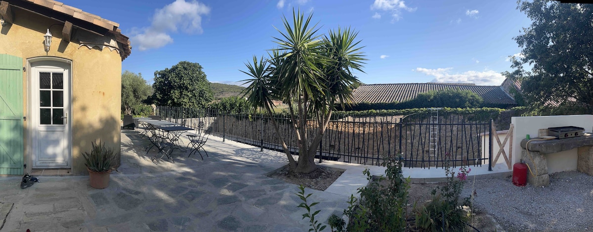 Charmante maison neuve independante avec piscine,terrasse,barbecue ,dans terrain de 2000m2. Clôturé. à 25km de beziers ,carcassonne et Narbonne. lac des jouarres à homps à 6km, canal du midi à 10 min,plage à 30 min. Nous sommes dans un petit village de 500 hbts tres calme avec epicerie boulangerie. Lit bébé et possibilité d'un lit de 80x190 Tous les animaux sont acceptes Groupes de jeunes non admis