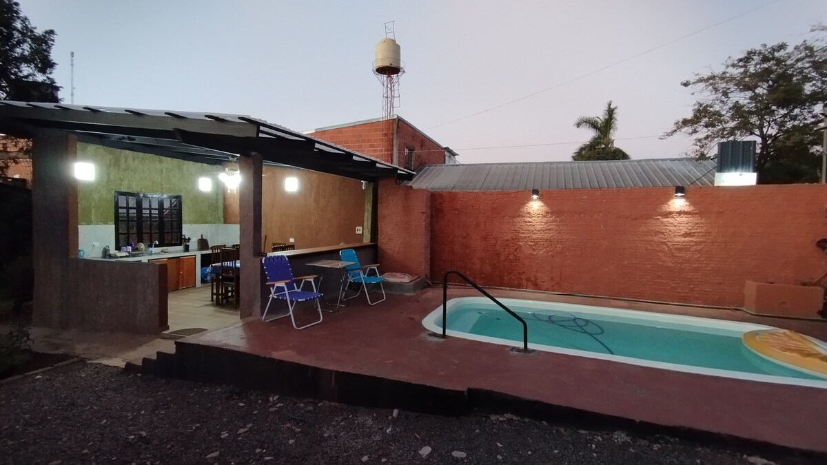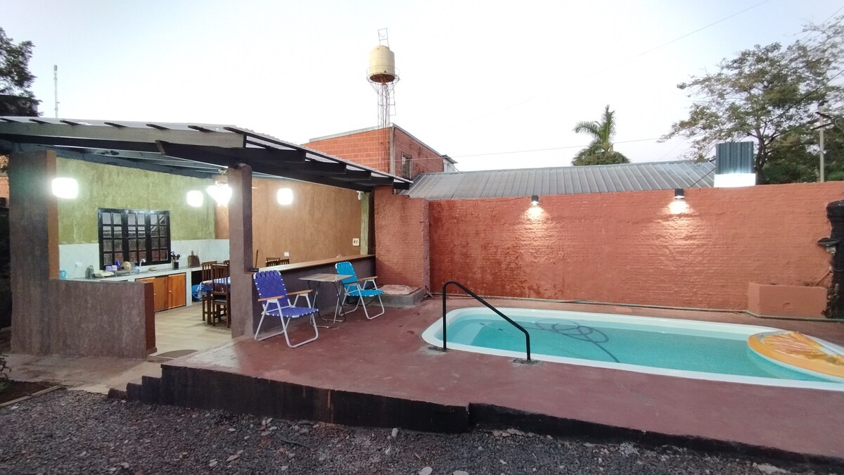 Découvrez le refuge parfait au bord du lac Uruguaí à Puerto Iguazú. Cette maison neuve, pouvant accueillir 4 personnes, combine style et confort dans chaque coin. Il dispose de 2 chambres confortables, d'une cuisine moderne, d'une salle à manger, d'un salon et d'un barbecue. La piscine privée vous invite à vous détendre dans un cadre naturel unique. Sa décoration boho et minimaliste dans des tons neutres crée une atmosphère sereine et charmante, idéale pour déconnecter et profiter de la tranquillité de l'endroit. nous vous attendons !♥️