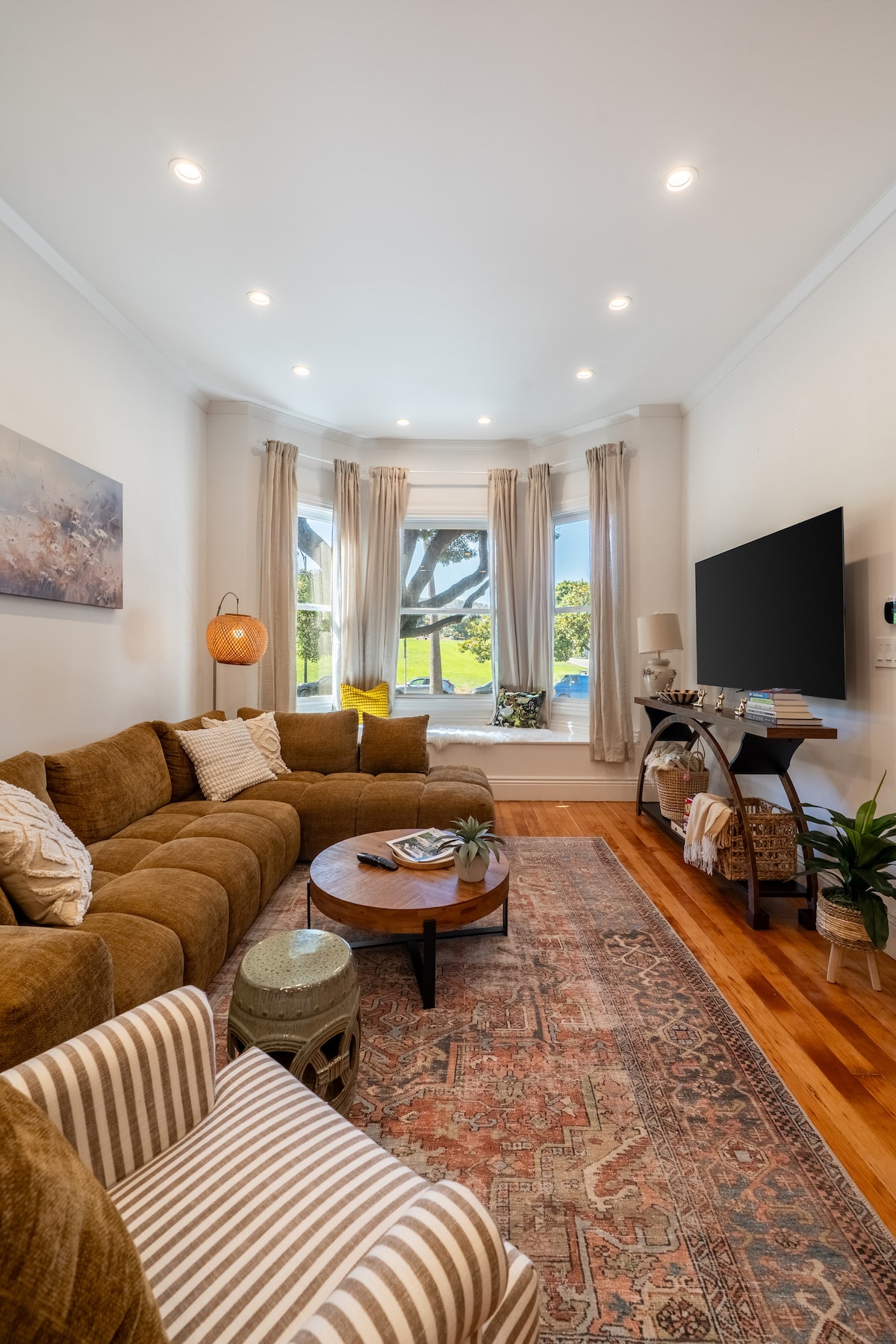 This beautifully sunlit 3-bedroom, 3-bath historic Victorian home is just steps from the lively and beloved by locals Dolores Park. Each spacious bedroom includes a dedicated full bathroom Bright, open living room with large bay windows to Dolores Park views Fully equipped gourmet kitchen with high-end appliances Garage parking for one sedan or small SUV-sized vehicle In-unit laundry, radiant floor heating Designer furnishings and amenities throughout