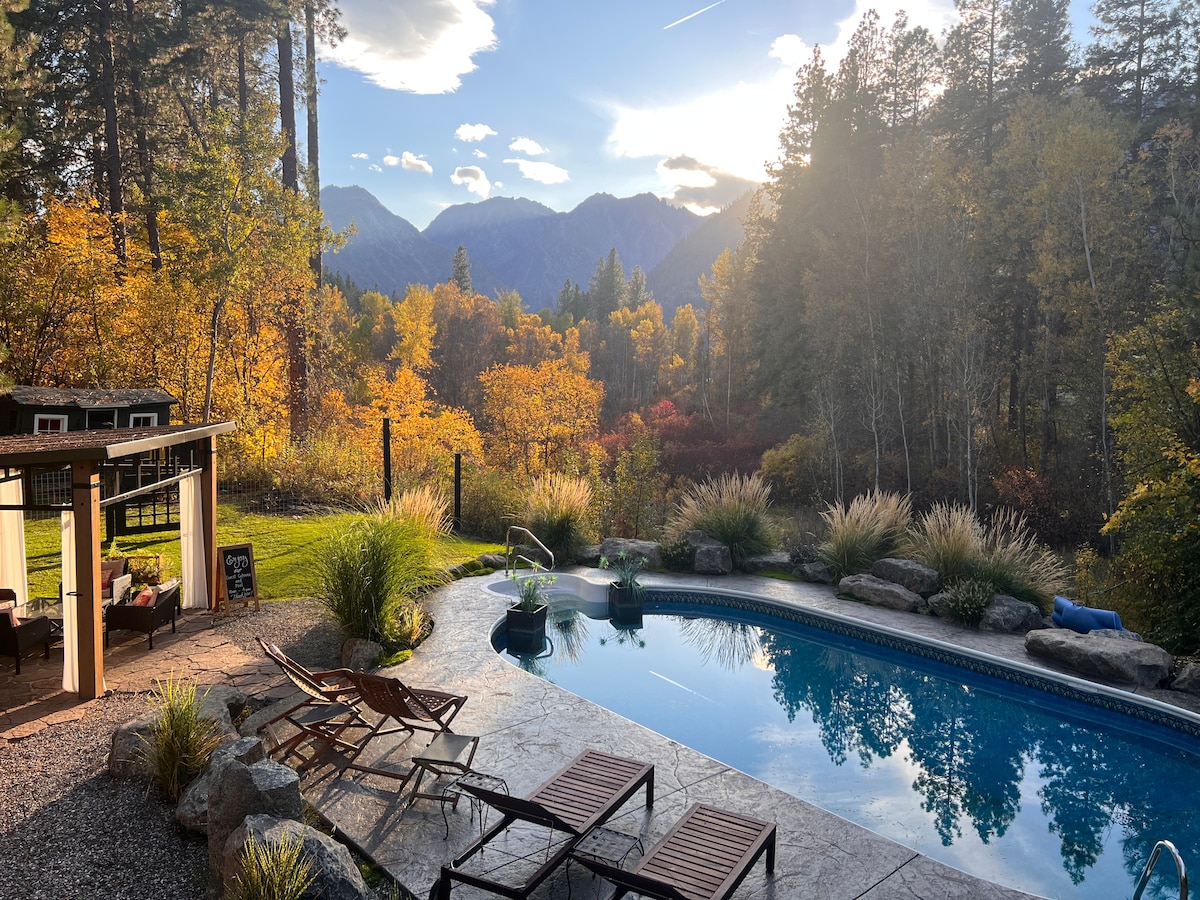 Découvrez la cabane de la rivière Icicle, notre retraite magnifiquement rénovée avec plus de 270 pieds de rivière privée, à seulement 2,8 miles du centre-ville de Leavenworth. Admirez la vue imprenable sur la montagne et la rivière tout en vous relaxant dans le jacuzzi et le sauna, ou profitez des nombreuses activités de plein air à proximité. À la tombée de la nuit, rassemblez-vous pour observer les étoiles près du foyer extérieur ou blottissez-vous près de la cheminée avec vos proches. La cuisine de notre chef est prête pour vos délices culinaires. WILLKOMMEN — votre escapade paisible vous attend !