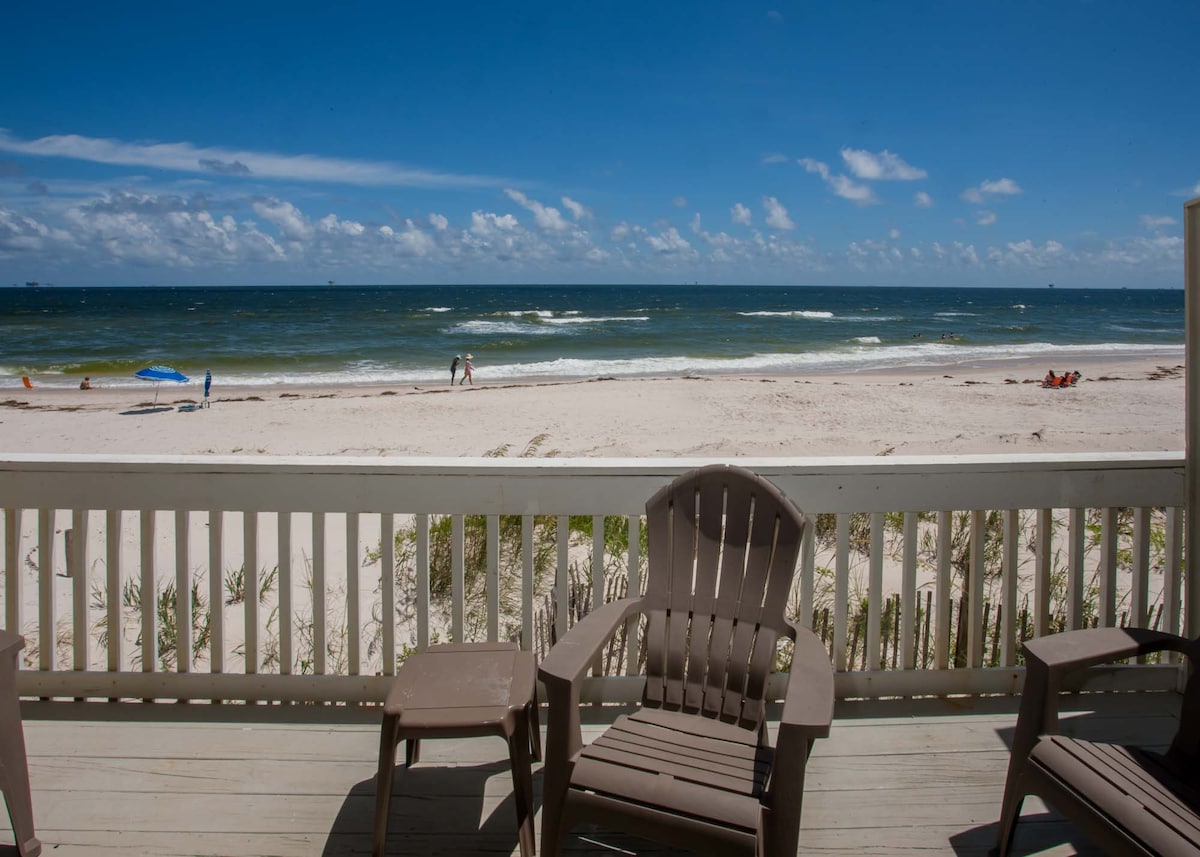 Appartement de deux chambres et deux salles de bain et demie décoré avec goût situé à Dauphin Island sur le golfe du Mexique. Vue sur le golfe depuis les deux balcons et l'espace de vie extérieur du rez-de-chaussée. Le complexe dispose de deux piscines (pas de piscine pour enfants ni de jacuzzi) et vous êtes à une centaine de mètres de la plage. Nous offrons à nos invités des chaises longues et des serviettes de plage… alors apportez simplement vos tongs et vous serez prêt pour la plage.