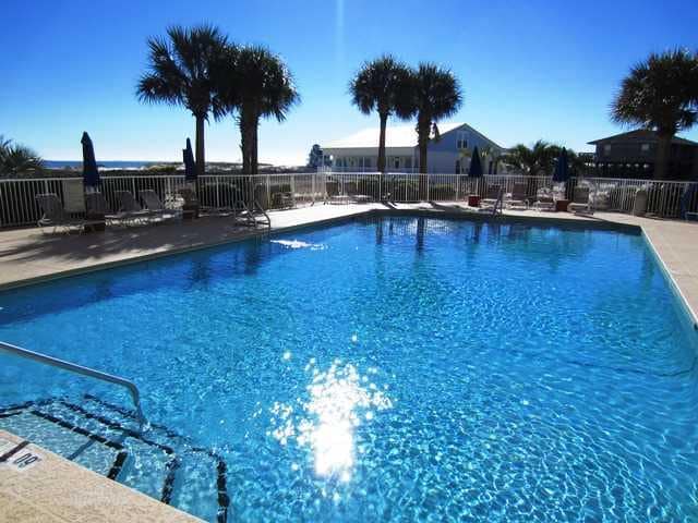 * Lit King Size avec salle de bain attenante *Lits superposés Twin alcôve avec salle de bain dans le couloir * canapé-lit queen size en mousse à mémoire de forme dans le salon. *2 salles de bain COMPLÈTES avec baignoire/douche *Lave-linge/sèche-linge de taille normale. *Cuisine, salon et salle à manger ouverts * Piscine et vue sur le golfe partiellement obstruée Équipements des dunes : *Une piscine extérieure avec une baignade jusqu'à la piscine intérieure (non chauffée) *spa * Barbecues communautaires (veuillez apporter votre propre charbon de bois et nettoyer après vous) *salle de sport reliée à la piscine intérieure
