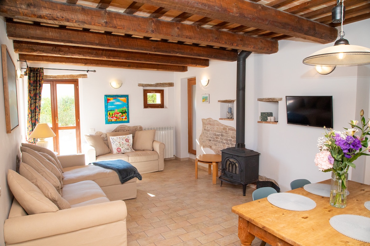 Un confortable chalet en pierre traditionnel rénové entouré par la campagne avec des vues à couper le souffle et un jacuzzi au feu de bois. Il est isolé et paisible, mais à seulement 5 min en voiture du village et des équipements locaux. En 35 minutes en voiture, vous pouvez vous retrouver dans le parc national de Sibillini ou dans l'autre direction la côte adriatique. De nombreux restaurants locaux à moins de 20 minutes en voiture servant une cuisine fantastique. Si vous aimez marcher ou faire de la randonnée, du vélo, du shopping ou simplement vous détendre, c'est un endroit idéal.
