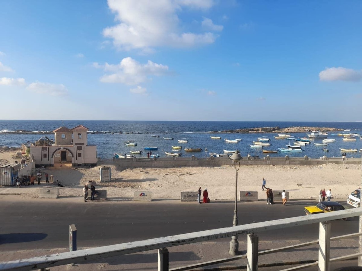 L'appartement de luxe avec vue sur la mer à Alexandrie offre un aménagement spacieux avec trois chambres et deux salles de bain. L'appartement dispose d'une terrasse et d'un balcon, offrant une vue imprenable sur la mer et la ville. Équipements modernes : les voyageurs bénéficient de la climatisation, d'une cuisine entièrement équipée et d'un lave-linge. Les installations supplémentaires comprennent un ascenseur, des chambres familiales et une sécurité toute la journée. Les voyageurs apprécient la propreté de la chambre et l'emplacement pratique, garantissant un séjour confortable et agréable.