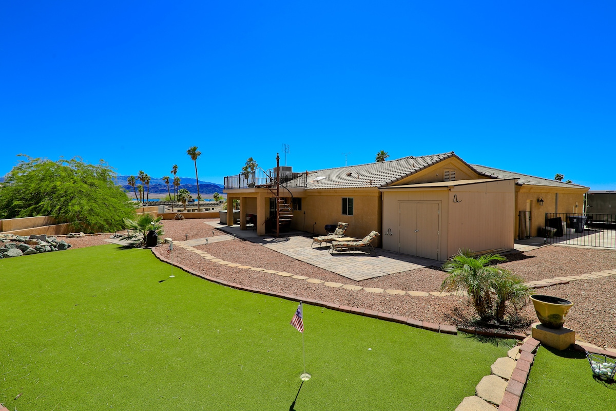 Découvrez le magnifique paysage qui entoure ce logement. Profitez des incroyables couchers de soleil de l'AZ sur les montagnes et le lac avec un refuge d'oiseaux naturel et un terrain de golf depuis le patio couvert. Marchez jusqu'au Golf Clubhouse pour jouer au golf ou manger un morceau au restaurant donnant sur le terrain de golf. Profitez du putting range très pratique à côté de la maison. Marche sûre et pratique tout autour de la zone. À proximité des casinos de Laughlin... Casino AVI à quelques minutes.