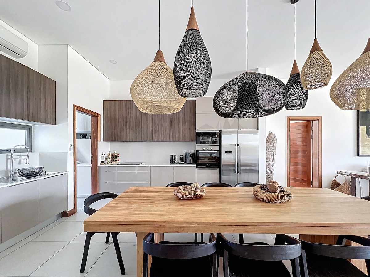 Villa romantique ou familiale avec espaces à vivre ouverts sur un jardin et piscine privée. Situé a 2km de Grand Baie, quartier residentiel et a 500m de la plage. 2 chambres a coucher et 2 sdb attenantes Climatisation dans chambres a coucher Salon et Cuisine toute équipée WiFi illimité et TV Netflix Hotel 5 *, restaurant, cave a vin et Spa a 200m Service de nettoyage 6x la semaine Jardinier et pisciniste 2x la semaine Cuisine et garderie en supplément CCTV sécurité et 1 Parking