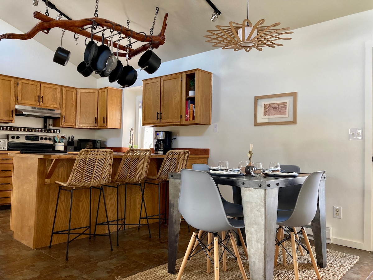Notre loft amusant et ensoleillé dispose d'une entrée privée, d'une cuisine complète bien approvisionnée, d'une douche/baignoire, d'un espace toilette fermé, d'un lit queen size et d'un lit jumeau étroit, d'une climatisation, d'une télévision avec streaming . . et d'une balançoire intérieure ! Il y a un barbecue et une table à manger extérieure + deux vélos, des raquettes et un lave-linge/sèche-linge complet et une 2e demi-salle de bain dans le garage. Nous avons un parking dans l'allée pour les voyageurs du loft, et nous sommes à quelques pâtés de maisons de l'université et du centre-ville historique. . & BTW, nous avons également AirBnB la maison principale : airbnb.com/h/montana-mediterranean