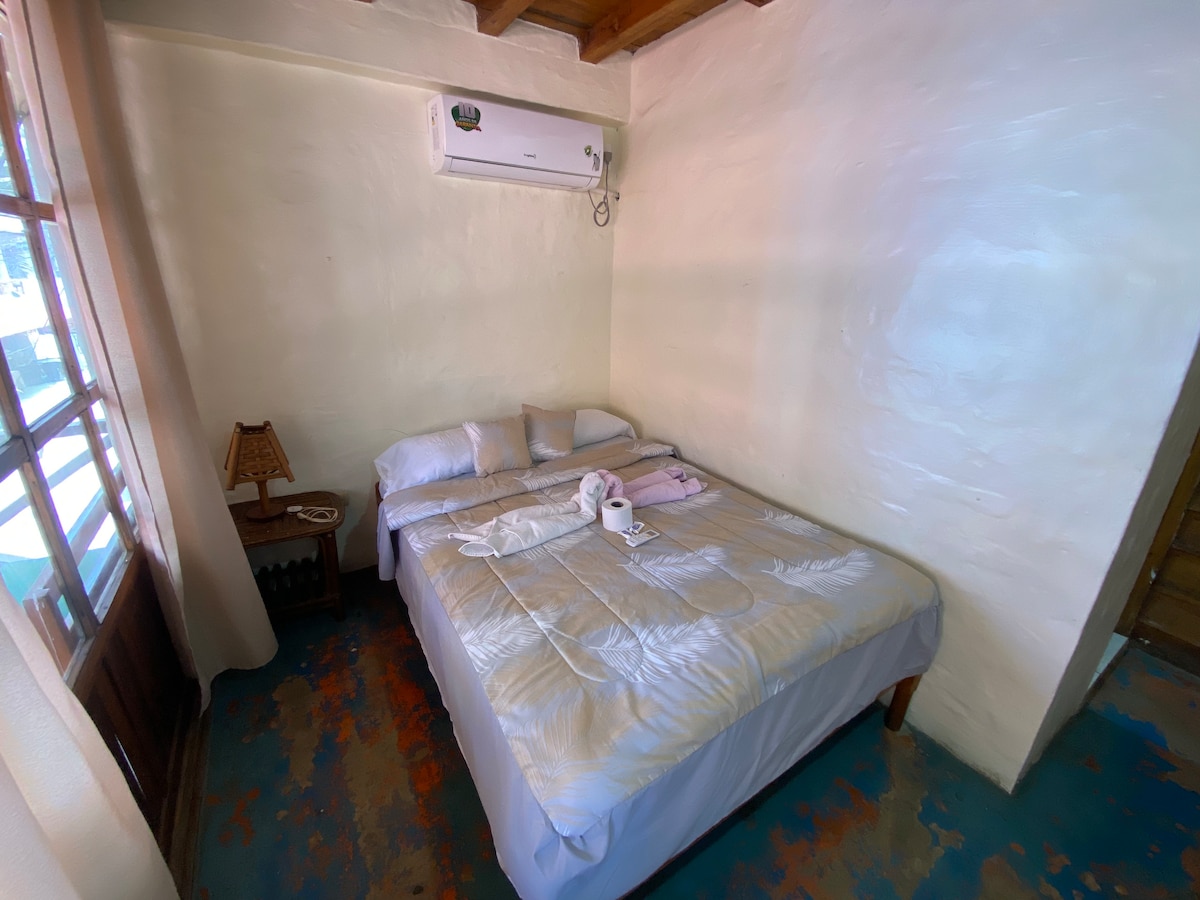 Chambre double avec climatisation dans le centre de Montañita, idéale pour les couples qui veulent faire la fête 🤩 Comprend un cocktail de bienvenue et le petit déjeuner