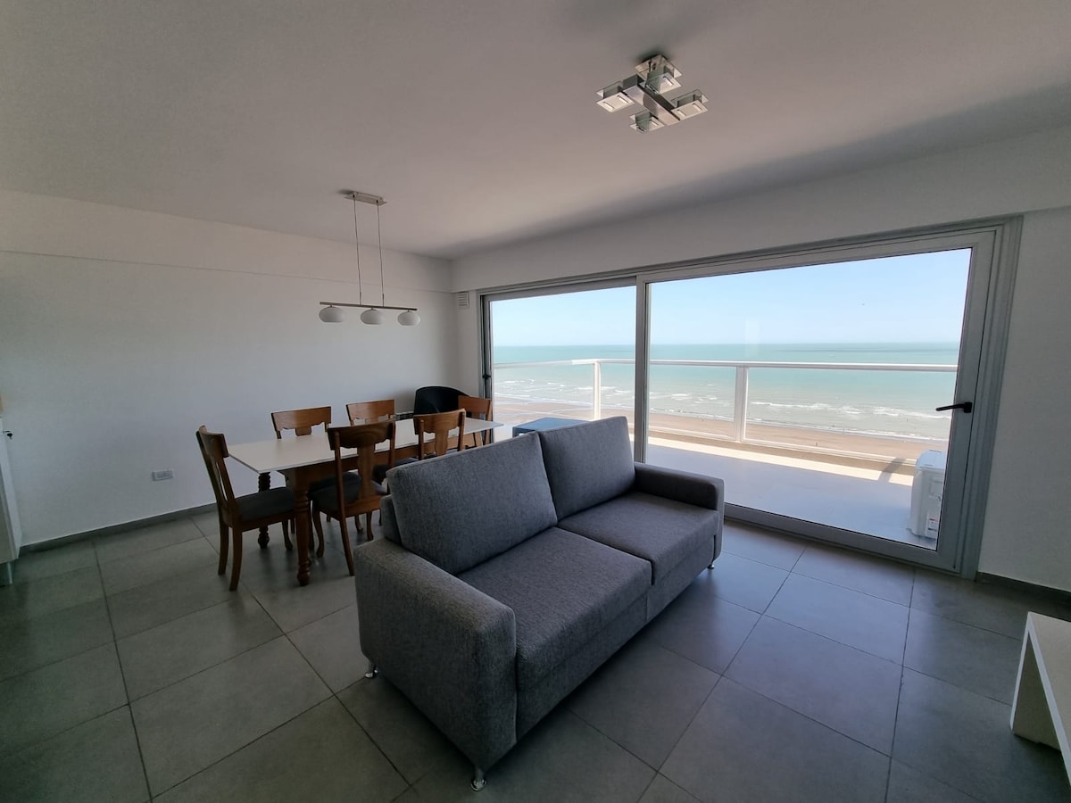 Frente al mar con excelente vista a la playa y al mar. Living comedor con parrilla,tv con cable,aire acondicionado, muy cálido ambientado, con muebles de muy buena calidad. Dos dormitorios, uno con somier de 2 plazas y otro dormitorio, con 3 camas bajas y una en altura,con tv led. 2 baños de los cuales uno es completo con bañadera. Balcón y cochera. No incluye ropa blanca (sabanas y toallas).