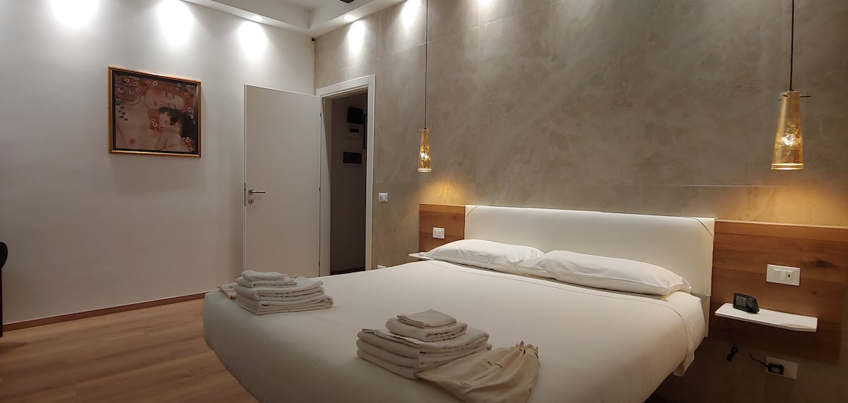 Cet appartement a été conçu pour offrir un séjour confortable aux couples, aux familles ou aux amis. Situé dans un bâtiment historique calme à Esquilino, l'appartement est proche des restaurants, bars, boulangeries, supermarchés et magasins spécialisés. Facilement accessible depuis la gare Termini (10 minutes à pied) ou la station de métro Vittorio Emanuele (2 minutes à pied) et à proximité de la plupart des sites historiques.