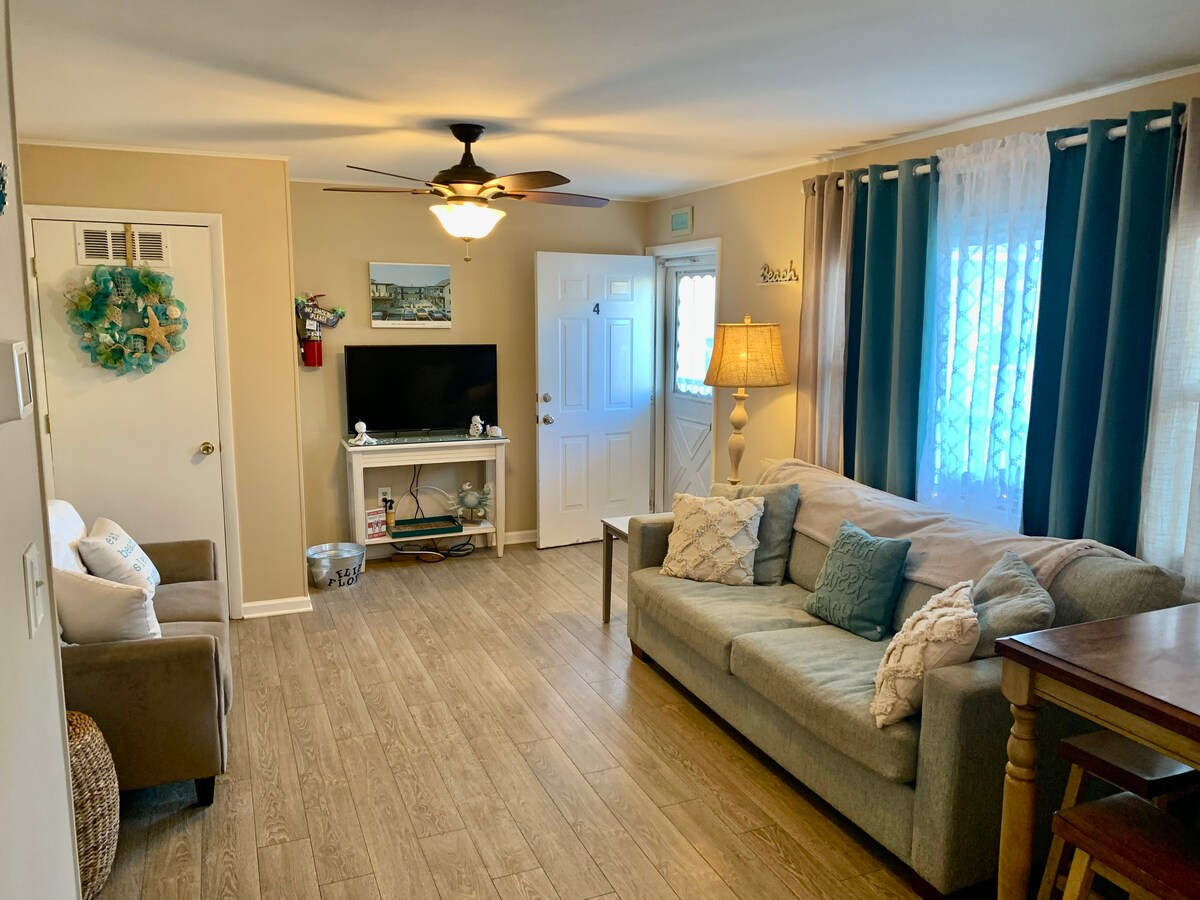 À SEULEMENT 3 PÂTÉS DE MAISONS de la PLAGE et de la PROMENADE et de Morey 's Amusement Piers. Cette charmante entreprise de vacances de 2 chambres peut accueillir jusqu'à 4 voyageurs. Profitez de la cour partagée magique avec fontaine. Pas de câble, mais le Wi-Fi est disponible. Plus une télévision connectée et un lecteur DVD. Il est possible de se rendre à pied à diverses commodités telles que des restaurants, Wawa, un supermarché et un bureau de poste. À 15 minutes de Victorian Cape May et du zoo du comté. À seulement 45 minutes d'Atlantic City. Climatisation centrale fournie du 15/05 au 15/15. Chauffage fourni du 15/10 au 5/10.