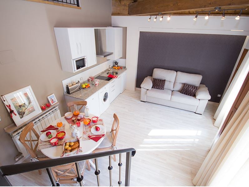 Bel appartement de style rustique, récemment restauré, dans la rue piétonne la plus emblématique de Logroño « Portales » à deux minutes à pied de la place du marché et de la cathédrale. Entouré de terrasses, de bars à vin, de restaurants, de musées et à 5 minutes à pied du célèbre pont de fer et du parc de l'Èbre. L'appartement est au quatrième étage sans ascenseur, mais il vaut bien l'effort des escaliers. Il est déconseillé aux familles avec des bébés ou de jeunes enfants qui doivent porter des poussettes.
