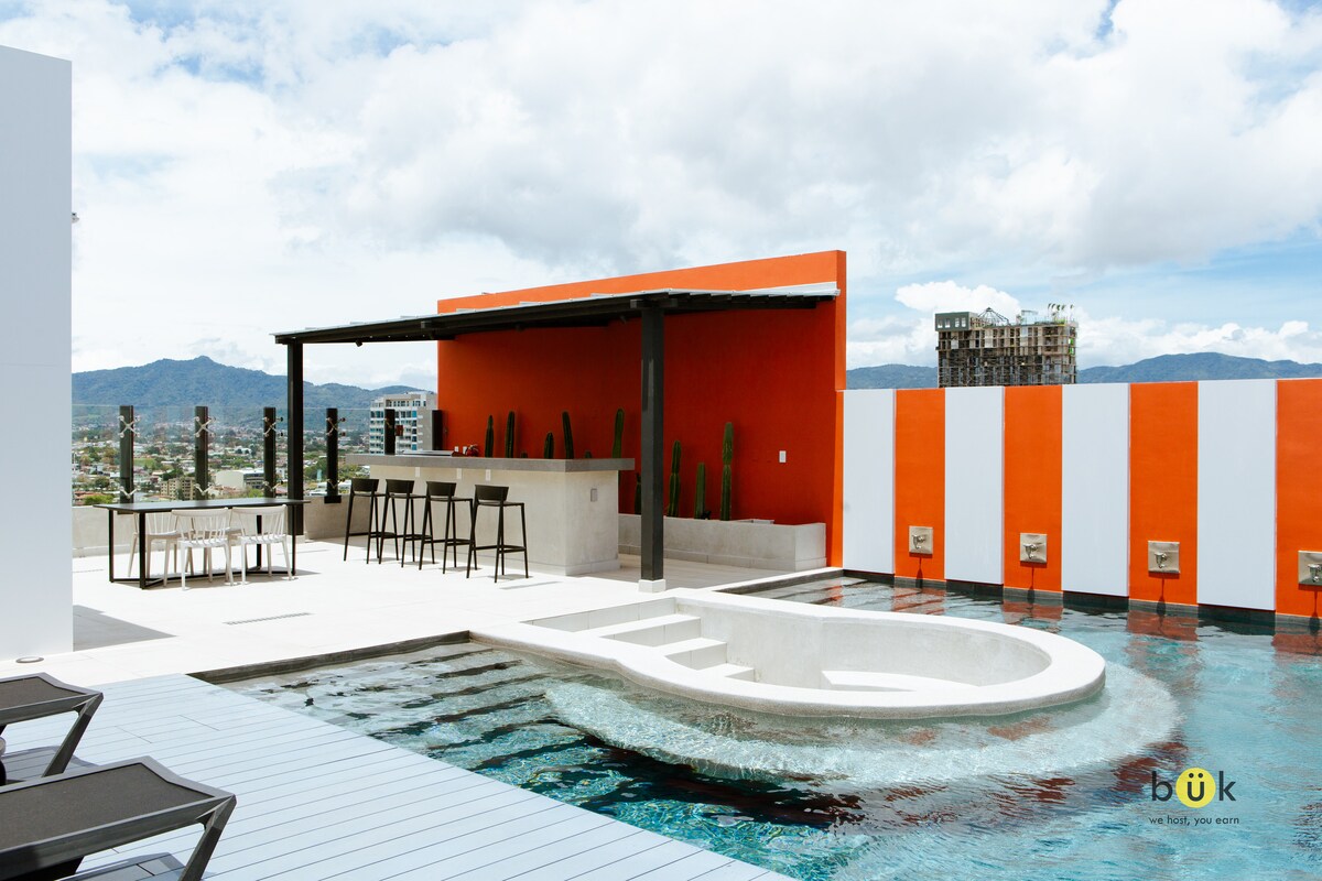 Il n'y a pas de meilleure façon de découvrir la beauté de San José que de dormir au cœur de la ville avec une vue spectaculaire sur le nord de la capitale. Le paysage du volcan Irazú à l'horizon sera le complément parfait pour profiter du lever du soleil dans votre lit. Cet appartement est parfait pour commencer votre expérience au Costa Rica, vous détendre après un voyage d'affaires ou passer une nuit romantique avec votre partenaire. Le tout d'un quartier privilégié à distance de marche des restaurants et des magasins.